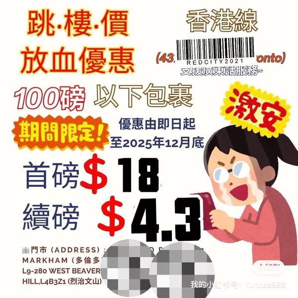 蘭裡 寄香港行李快遞文件包裹1.99/磅起各種貴重物品包清關包稅寄香港要轉換的內容 whatsAPP:4382287888
