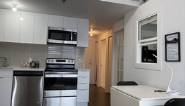 两室一厅,一大一小房间,全新楼房,游泳池,健身房,地下车库。蒙特利尔最繁华的市中心的最繁华地段的著名的crescent酒吧街。