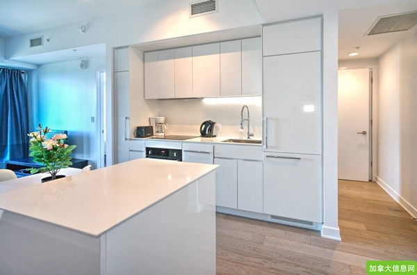 蒙特利尔DT,一室一厅一卫豪华公寓,5、6、7三个月短租,楼下是地铁站,对面有超市、麦当劳和星巴克,购物、餐饮非常方便,公寓配全套家具、家电,入住方便。