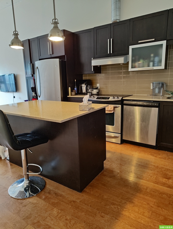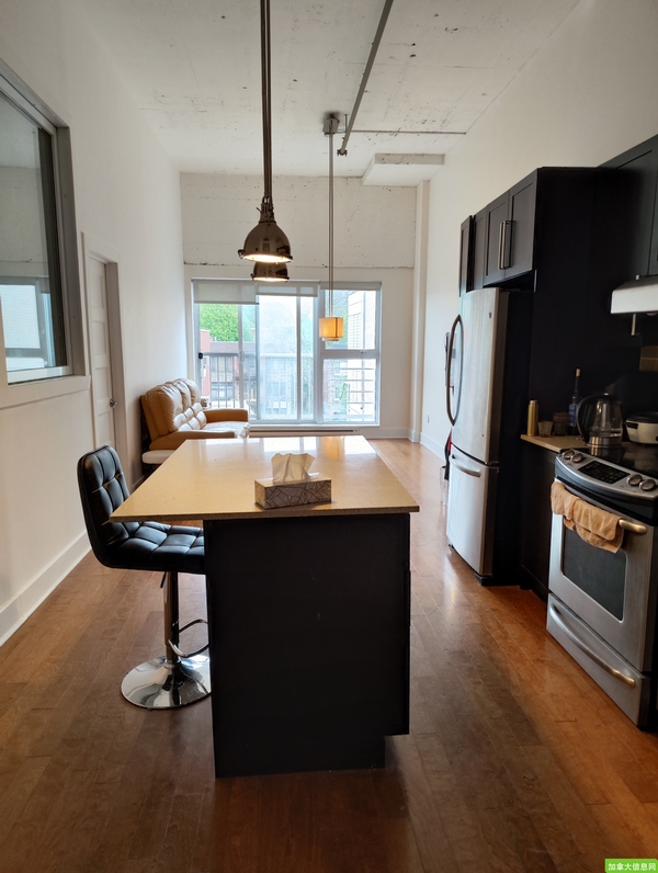 富人区Mont Royal 皇家山朝东南四个半无遮挡采光好含室内车位和locker,包含洗衣机烘干机洗碗机炉头冰箱微波炉等家电,床,桌椅等家具。