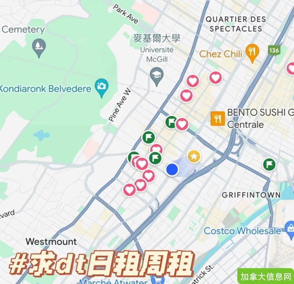 求蒙特利尔dt 6月13日-19日左右日租周租