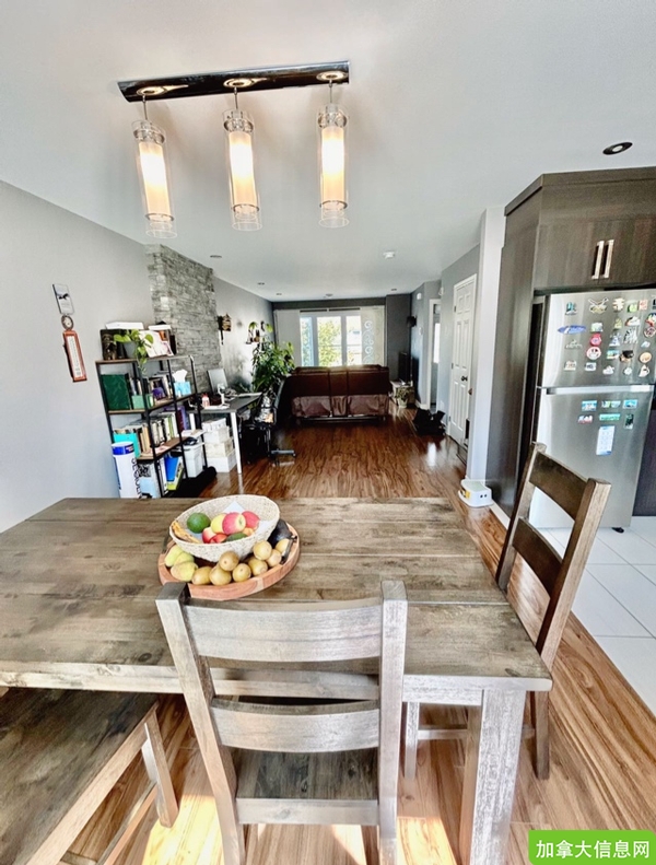 蒙特利尔 Brossard C区半独townhouse整租,一楼时尚现代的设计,开发式厨房、餐厅布局,宽敞明亮,二楼 3 间卧室,私人后院有露台和草地,适合休闲和家庭聚会。