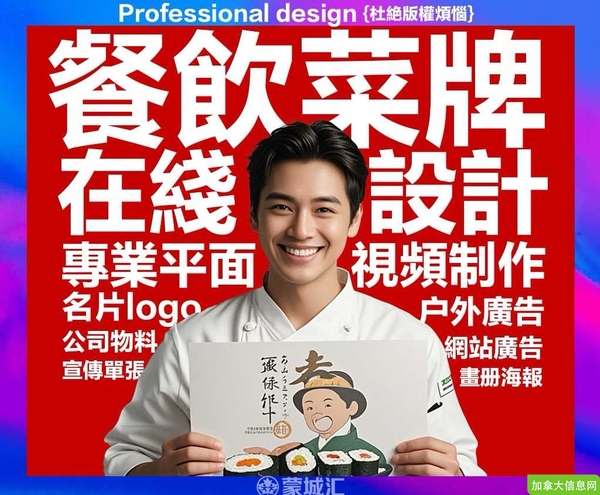 超20年广告生涯,经验老道,麦当劳那么出名都还在做广告呢,你呢?一个主题氛围好点店和一个没氛围的店生意差的可不是一点半点!毕竟就餐环境是非常重要的,特别是在加拿大!Email:m282002613@gmail.com    电话:5143473398