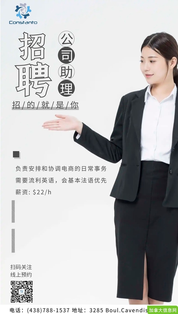 如有问题或联系应聘,请加微信constantochoix,或联系(438)788-1537。也可预约来我们人力资源公司办公室3285 Boul Cavendish, #500. H4B 2L9面试。