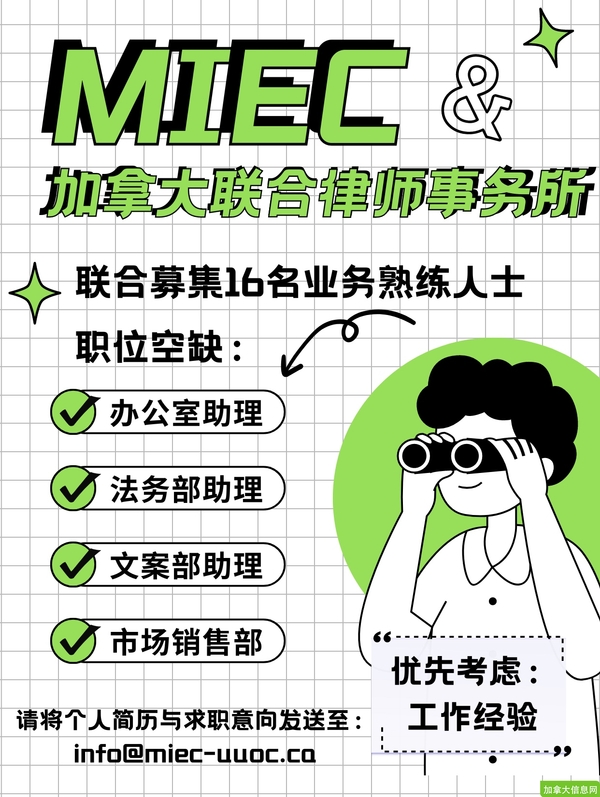 优先考虑有工作经验与工作能力者请将个人简历和求职信发送至info@miec-uuoc.ca,并在邮件标题中注明申请职位名称。我们会尽快与您取得联系!
