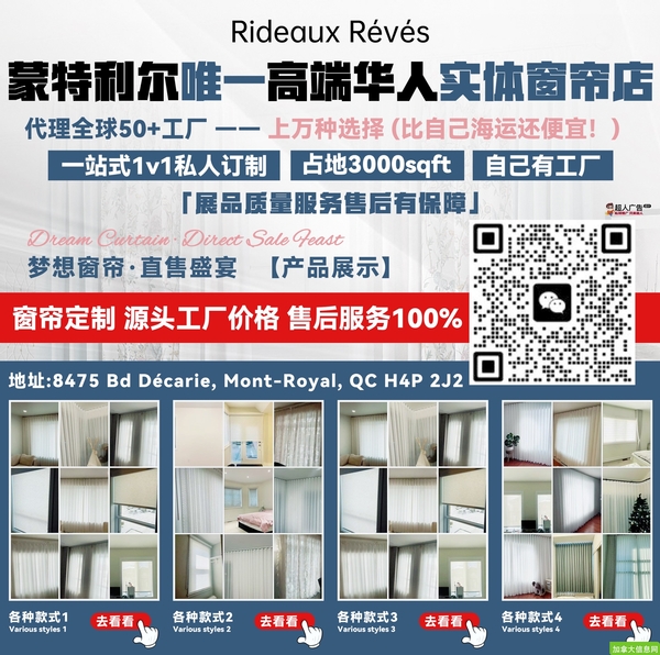 3000SQFT华人最高端最大窗帘店目前寻找兼职销售,坐班不坐班都可以,梦想窗帘地处皇家山, De La Savane 地铁门口, 国内自己工厂,有意者请加w591935415