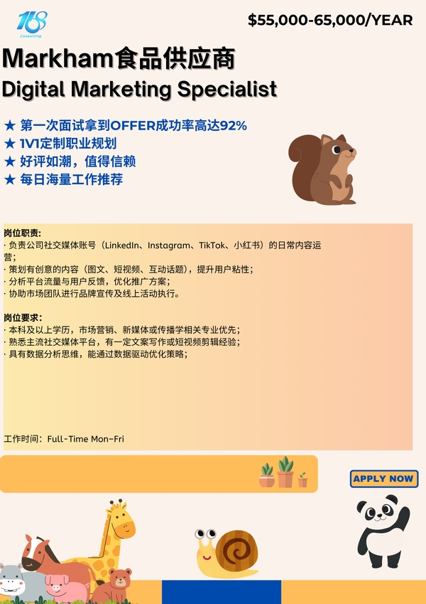 【168中介内推】Markham食品供应商诚聘Digital Marketing Specialist