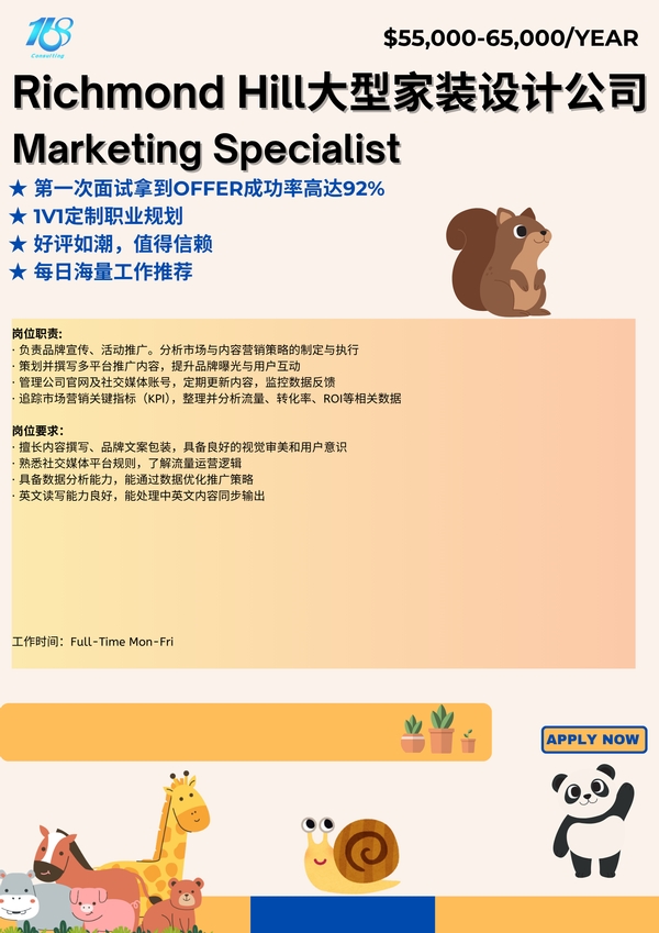 【168中介内推】Richmond Hill大型家装设计公司诚招Marketing Specialist