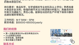 岗位要求:食品科学、化学或相关专业本科及以上学位;熟悉加拿大食品安全法规;极强的细节关注力和逻辑分析能力;具备良好的中英文沟通能力;责任心强,能够在动态的生产环境下保持冷静并迅速处理异常情况。