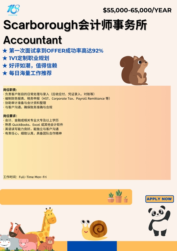 【168中介内推】Scarborough会计师事务所诚聘Accountant
